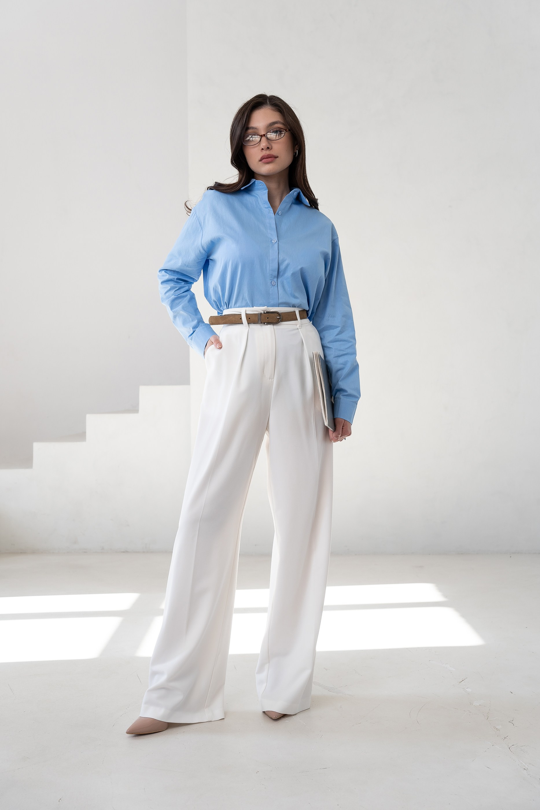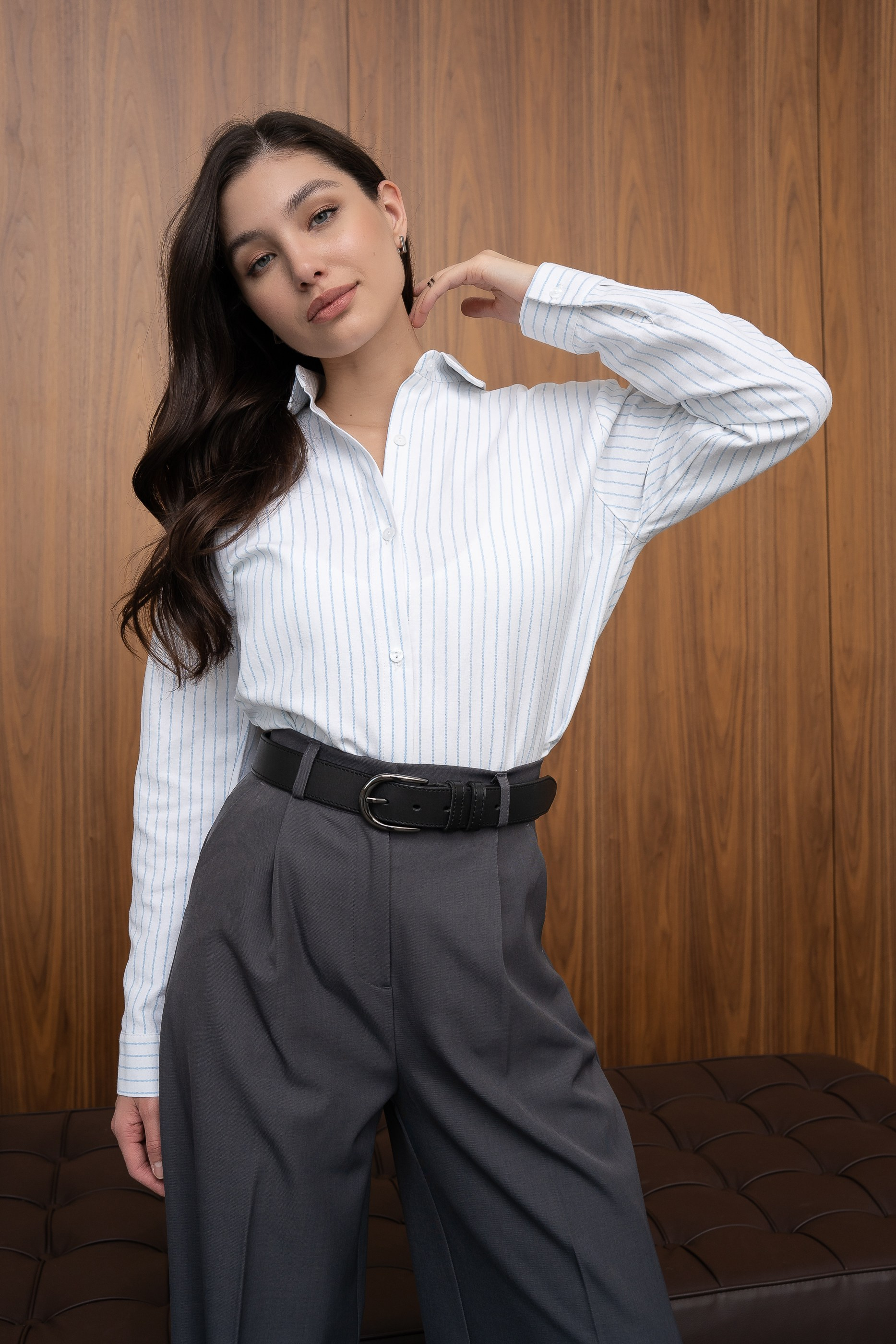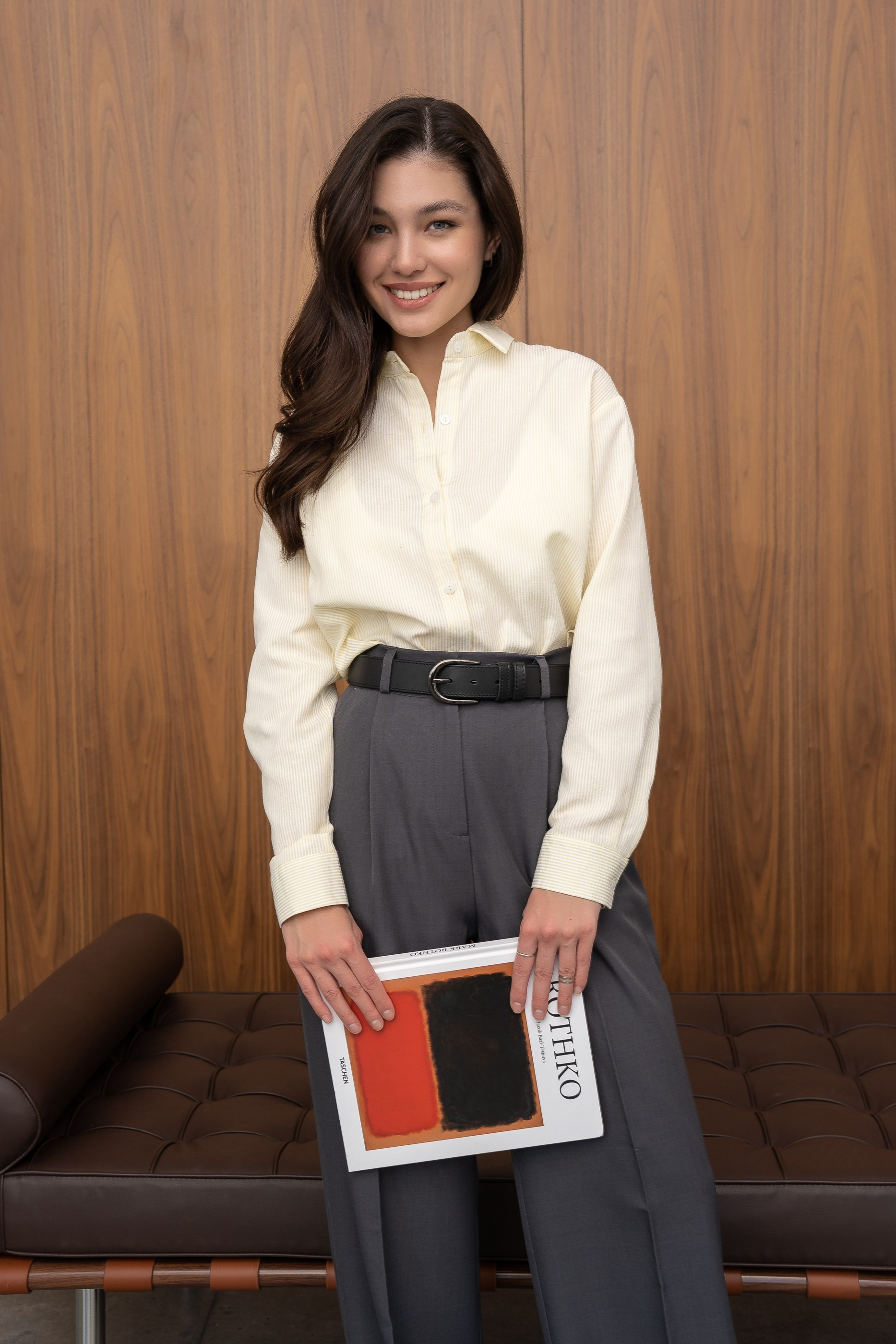В этом проекте мы снимали женские рубашки, и задача была сделать кадры живыми, современными и более разнообразными по подаче. Для этого я работала вместе со стилистом: мы собрали несколько вариантов стилизации, чтобы показать рубашки не однотипно, а в разных образах и настроениях.